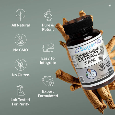 SugarMD Ashwagandha Extract 1000 MG – 60 Capsules